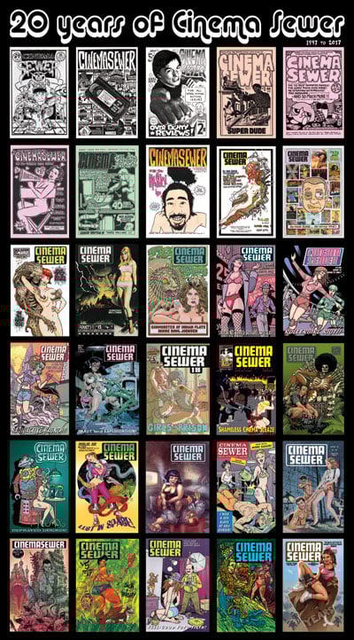 Well, this is it! The culmination of 20 years of hard work! Issue thirty of Cinema Sewer magazine! YAY! Here's to another 20 years (hopefully!) When I started CS at the age of 23, I had no idea what was to come, and it certainly wasn't anything meant to be permanent. It was just yet another mini-comic series, of which I had done dozens of previously. How time flies, and look at how this sleazy little zine has grown...